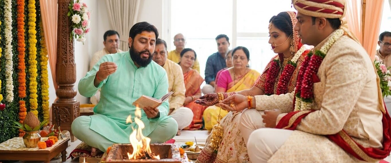 A wedding is not just the union of two people, but a sacred union of two families and souls. In Hinduism, marriage is a sacrament that is incomplete without the proper rituals and Vedic mantras. An expert wedding Pandit is the one who solemnizes this bond of lifetimes with the blessings of the gods.